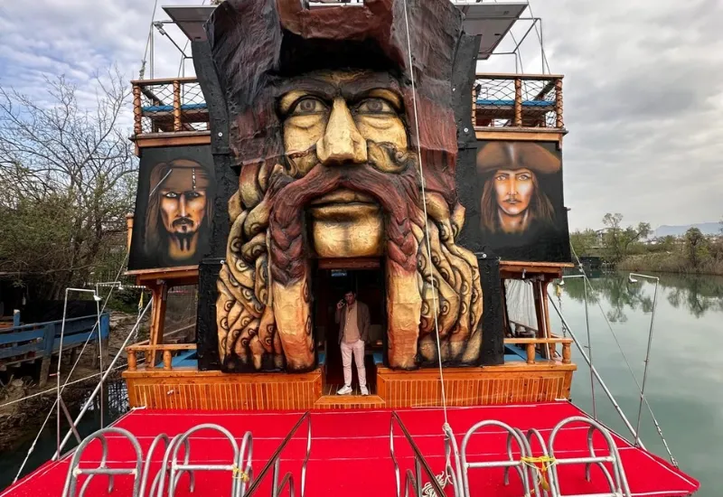 Your day begins with hotel pickup from Side and nearby resorts. At the harbor, you’ll board a two-deck pirate ship, complete with flags, sails, and a crew in full costume. From the first step onboard, the experience feels themed without being chaotic — it’s organized, family-friendly, and easy to enjoy.