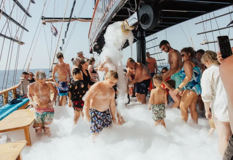 Cruise Side’s coast on a pirate boat with swimming stops, a treasure hunt, and a foam party. A safe, fun family boat trip with no hidden fees.