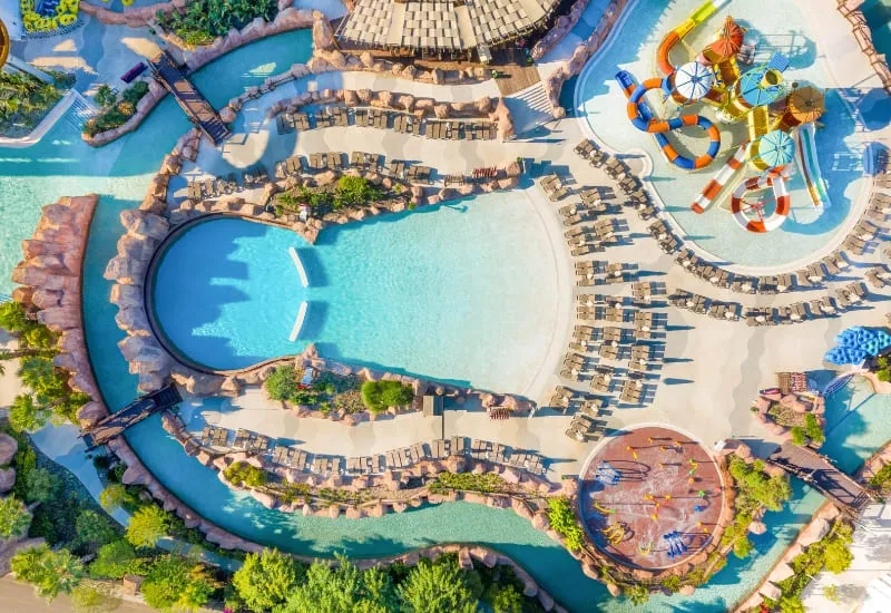 Explore over 50 exciting attractions, from high-speed roller coasters to relaxing lazy rivers, expansive wave pools, and vibrant water slides suitable for visitors of all ages. The Aqua Park area promises endless fun and cooling off in crystal-clear waters.