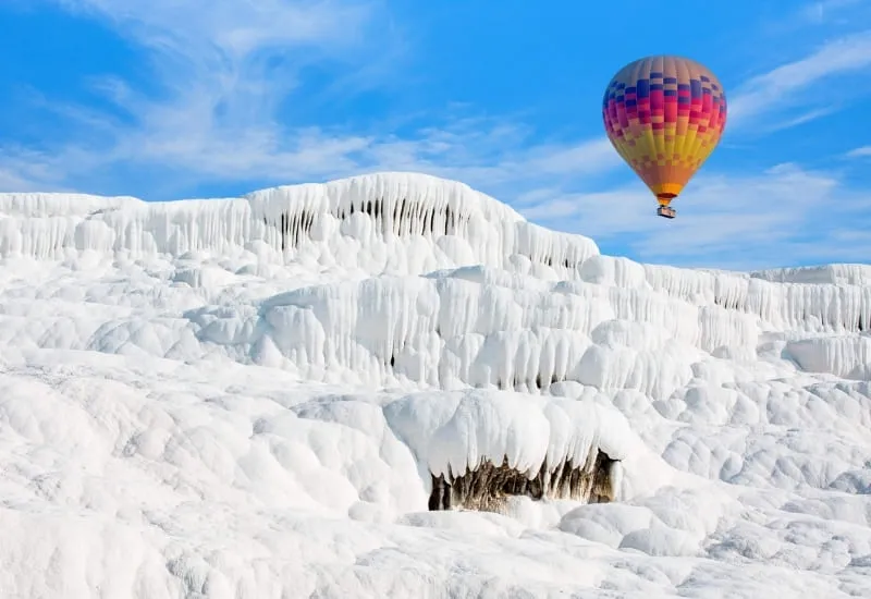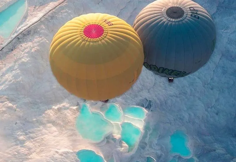 - Join a hot air balloon flight and float peacefully above the travertine terraces.