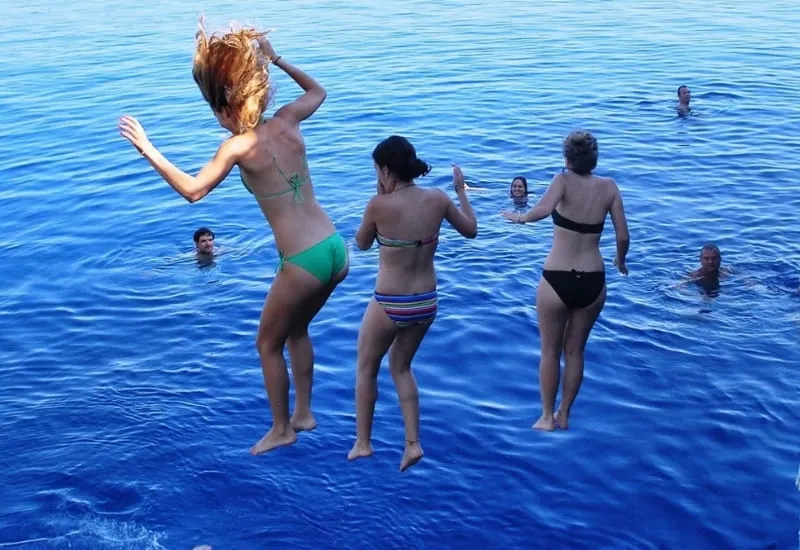 - Swimming stops at Blue Lagoon and Caretta Bay