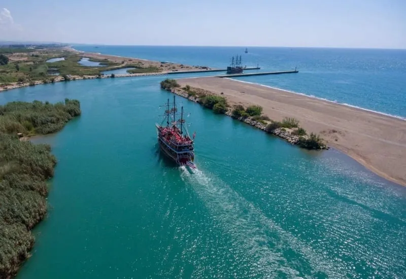 Start your tranquil day at sea with a hotel pickup from Side and surrounding areas including Kumköy, Evrenseki, Çolaklı, Sorgun, and Titreyengöl. After a short scenic drive, you’ll arrive at the dock near the mouth of the Manavgat River, where a spacious double-deck boat awaits.