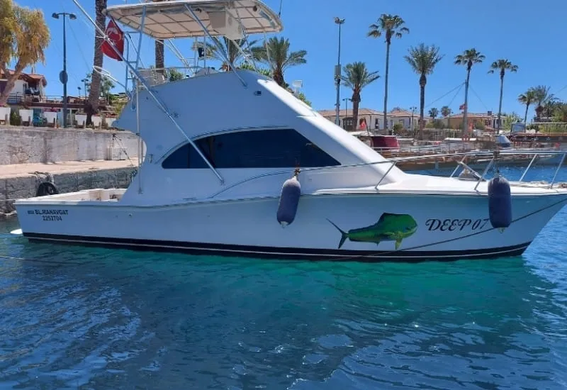 Your journey begins with a morning hotel pick-up from Side or the surrounding areas. After a brief and comfortable transfer to the marina, you’ll meet your experienced captain — a local expert who knows these waters better than anyone. The boat you’ll board is compact yet fully equipped with everything you need for an effective day of trolling, including sonar, rod holders, bait tanks, and shaded seating.